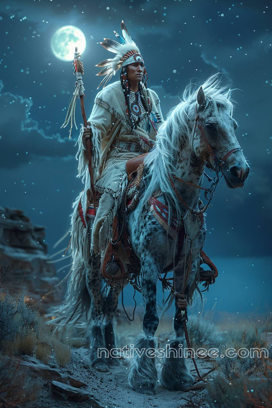 Moonlit Guardian: A Warrior's Vigil Native American Horse Canvas