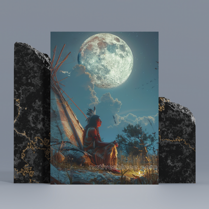 Moonlit Reflections: Native American Canvas