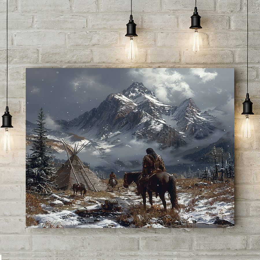 Mountain Majesty and the Quiet Camp Native American Horse Canvas