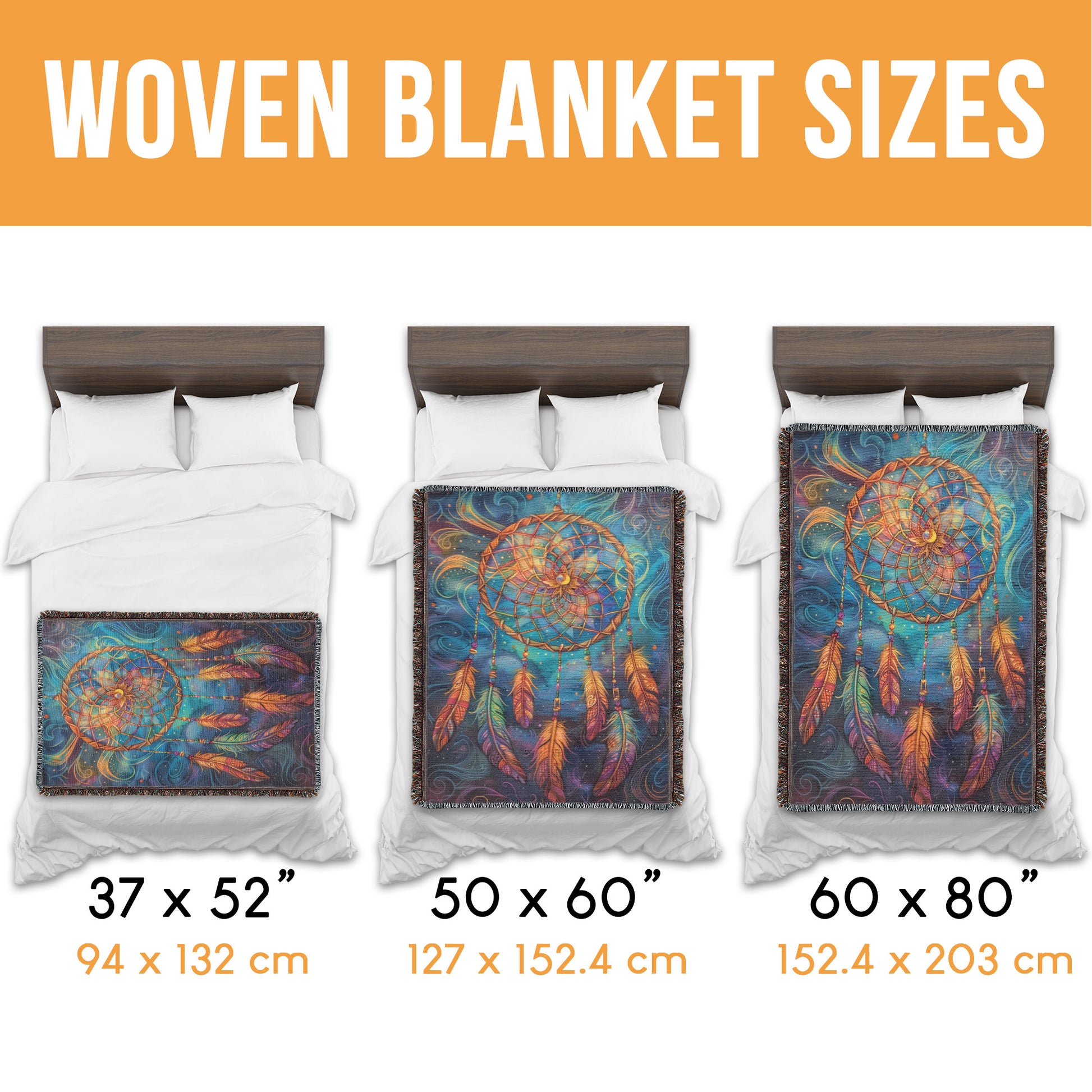 Weave your dreams with the magic of our Mystic Dreamcatcher Woven Blanket! This enchanting throw features a vibrant dreamcatcher design, adorned with colorful feathers and beads, set against a cosmic background of swirling blues and purples that evoke a sense of mystery and protection. Perfect for those who cherish the spiritual symbolism of dreamcatchers and love a bohemian aesthetic, this blanket adds a touch of mysticism to any space. Crafted from 100% cotton and expertly woven for a soft, breathable, and durable finish, it’s ideal for cozying up on chilly evenings, draping over your couch, or displaying as a piece of art. The fringed edges enhance its boho charm, making it a versatile piece for both decor and comfort. Wrap yourself in the protective and serene beauty of this dreamcatcher design with this stunning woven blanket, and let its magical energy inspire your cozy moments.