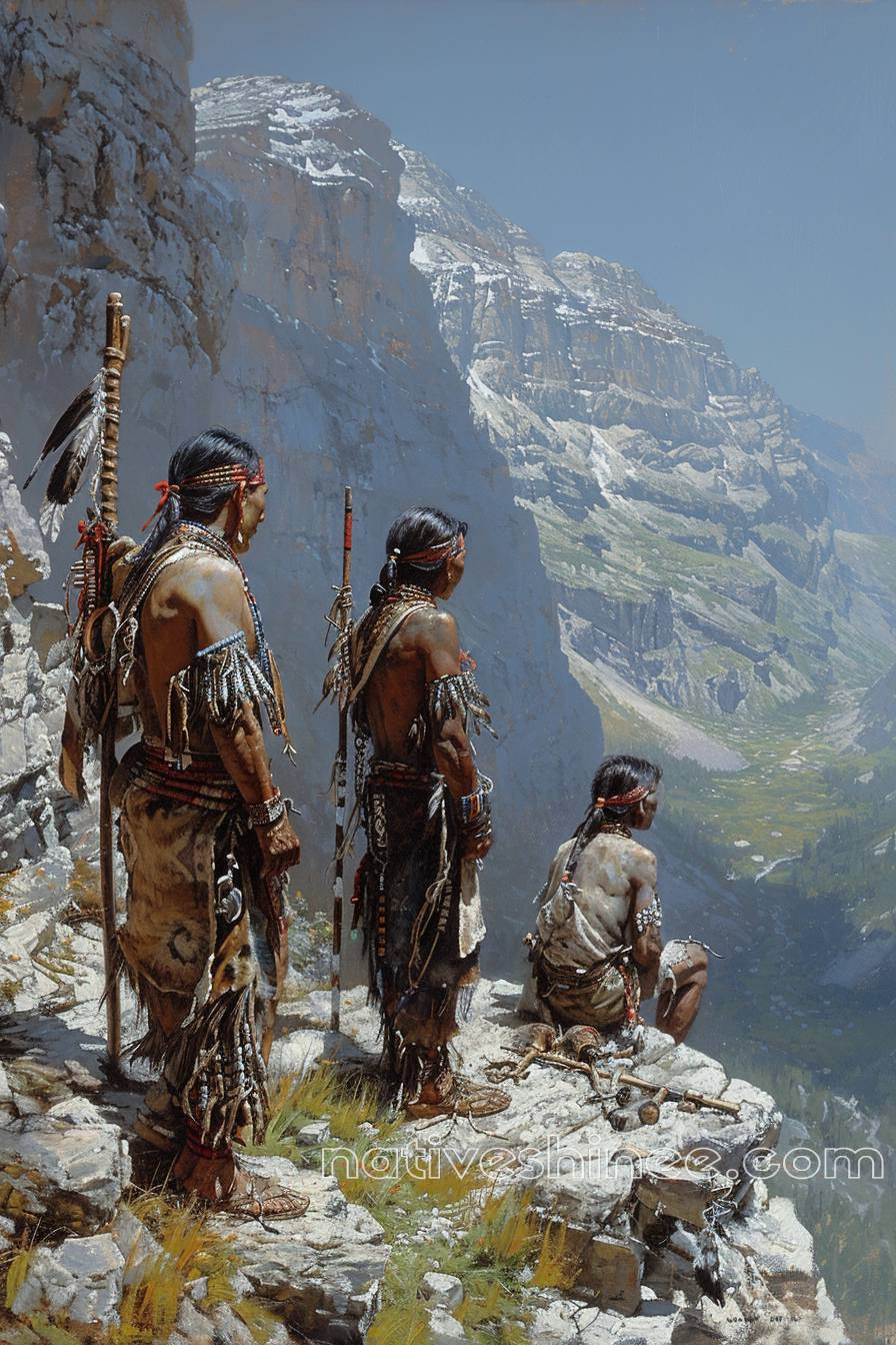 Native American Warriors on the Cliff Native American Canvas