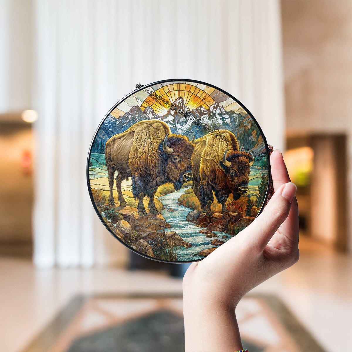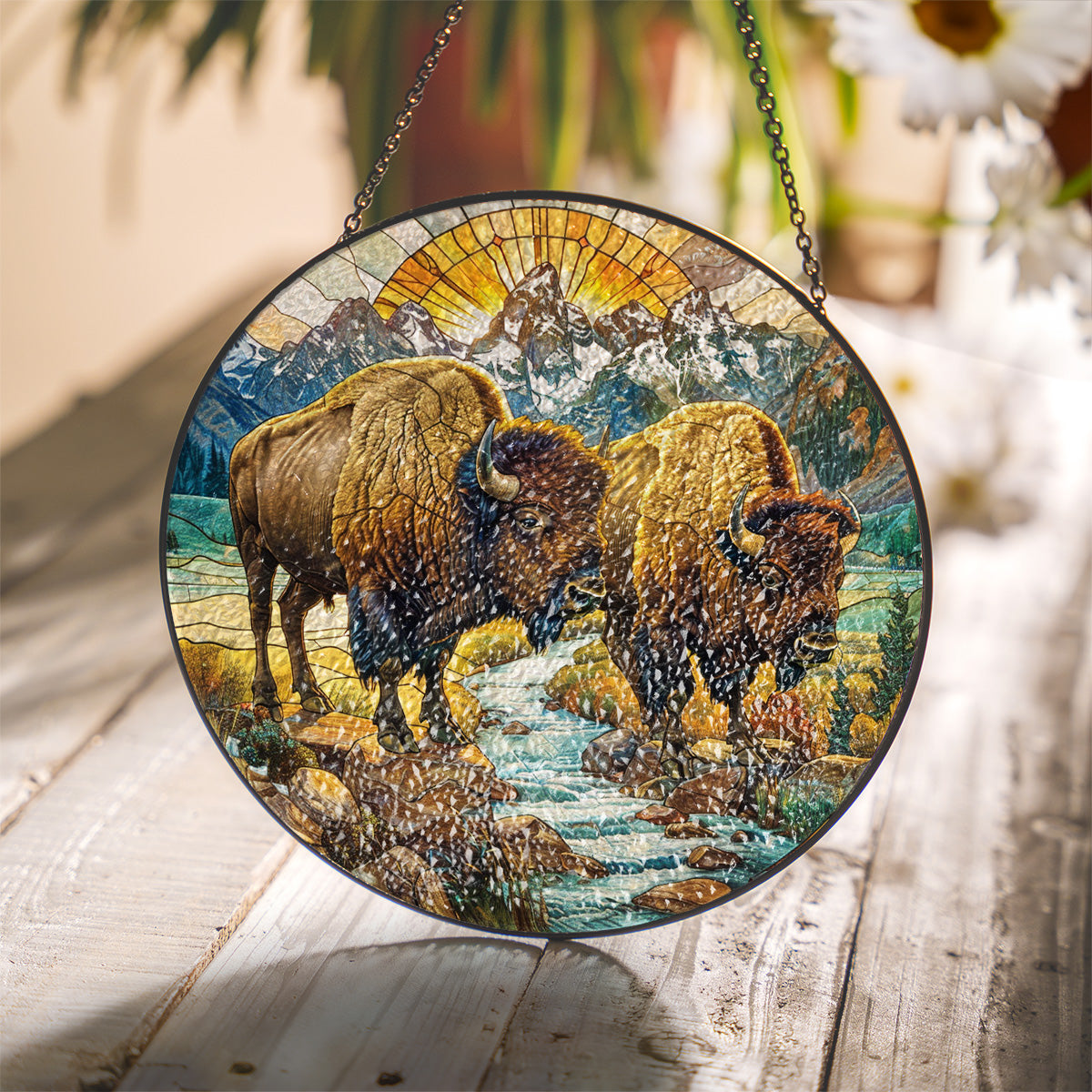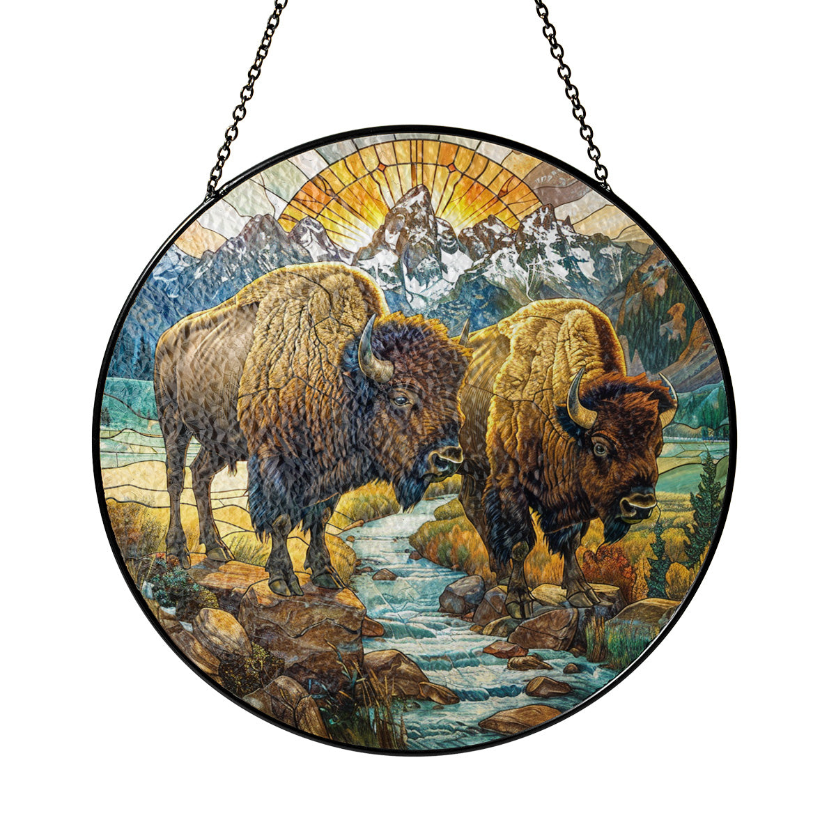Native Bison Stained Glass Suncatcher for Window Hanging