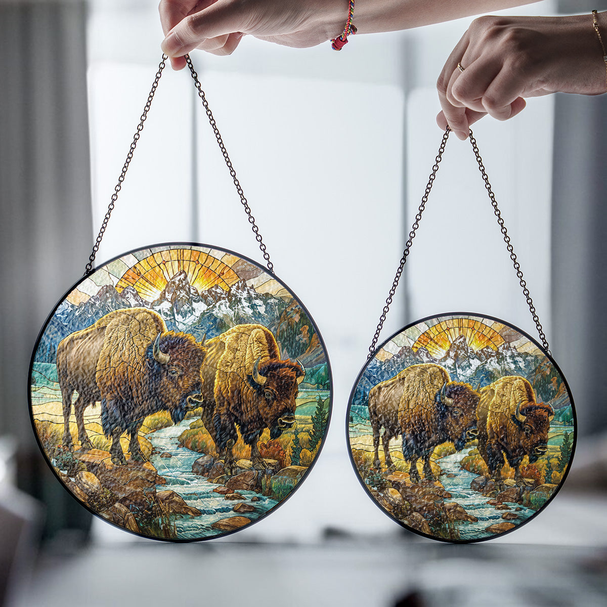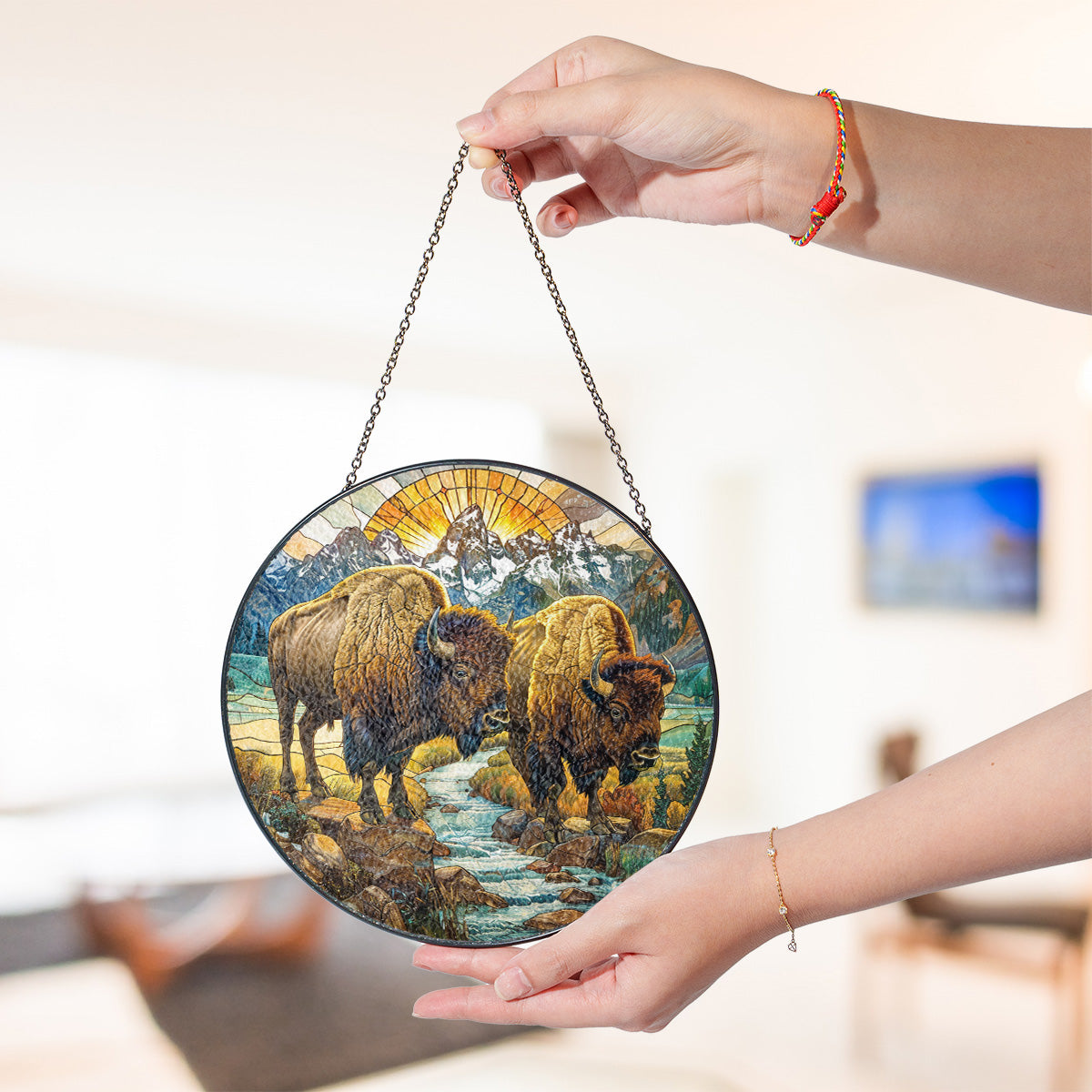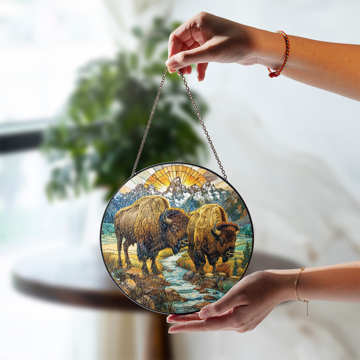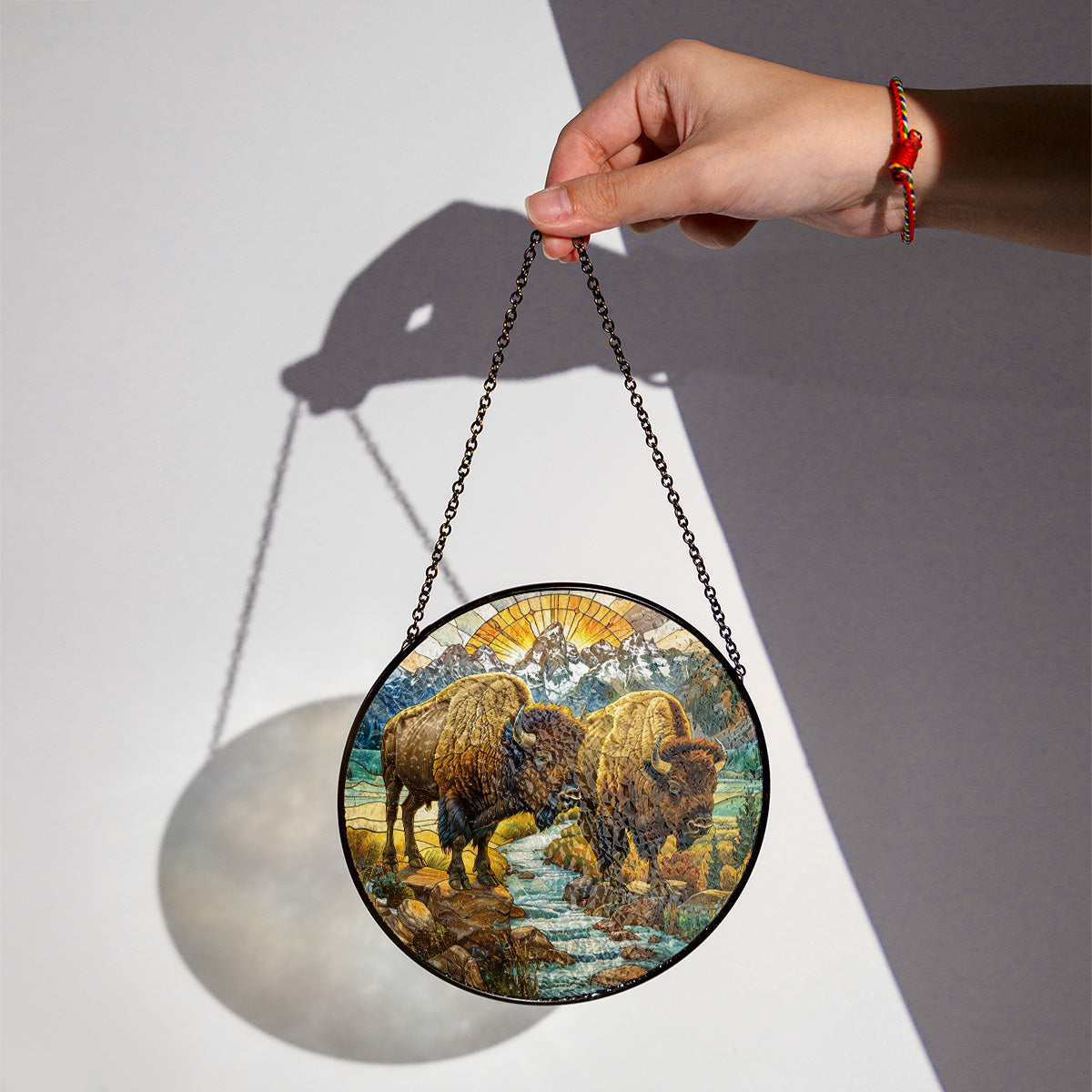 Native Bison Stained Glass Suncatcher for Window Hanging