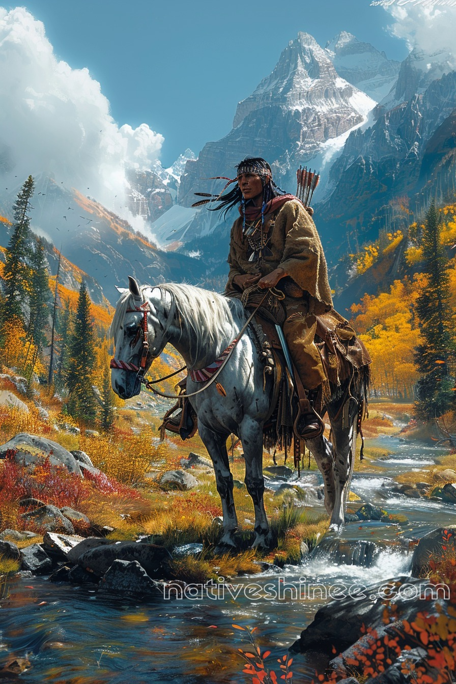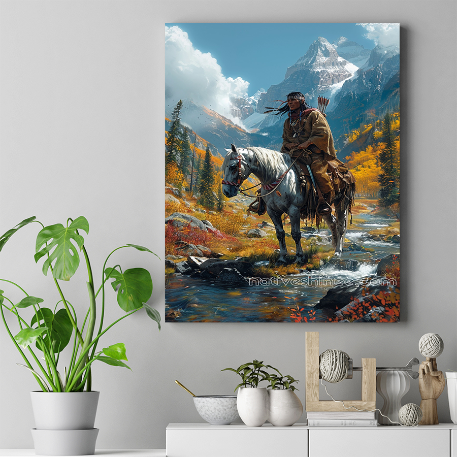 Native Hunter in Mountain Majesty Native American Canvas