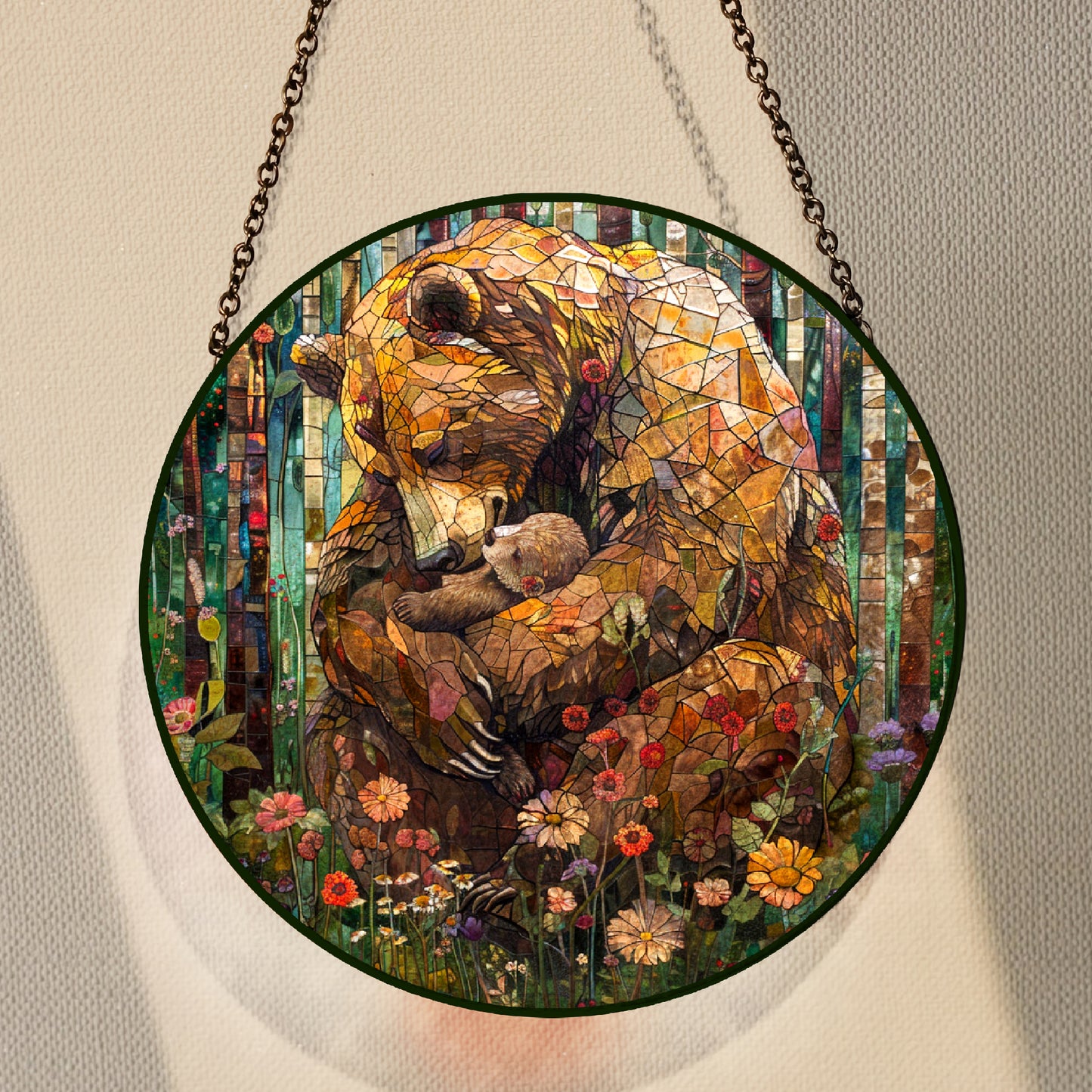 Native Mama Bear Stained Glass Suncatcher for Window Hanging