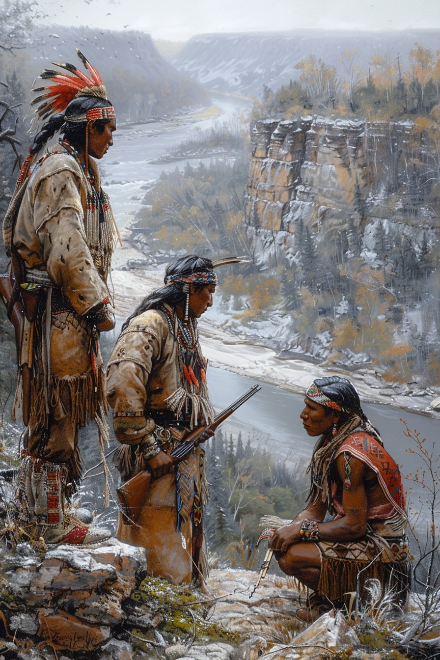 Overlooking the River Tales of Old Unfold Native American Canvas