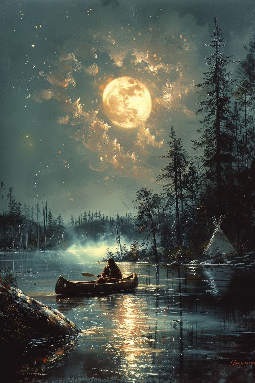 Immerse yourself in serenity with the Paddling Through Whispering Waters Native American Canvas. This stunning artwork features a Native American paddler gliding gracefully through tranquil waters, surrounded by the soft glow of nature’s beauty. Symbolizing harmony, reflection, and a deep connection to the land and its waterways, the scene evokes peace and timeless tradition. Crafted with premium-quality materials, this canvas adds elegance and cultural depth to any space. Perfect for those who cherish Native heritage and the calming essence of nature, it’s a tribute to the journey through sacred waters and the whispers of the past.