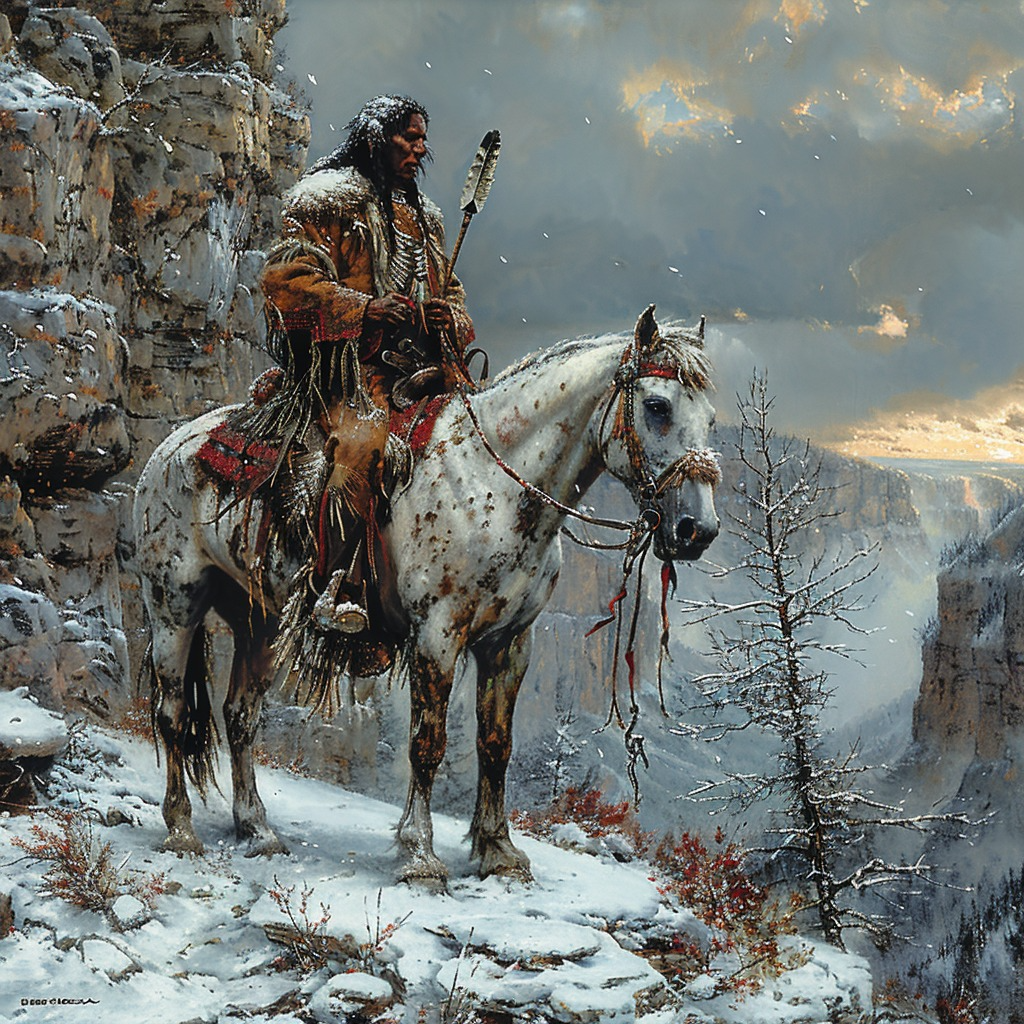 Pathfinder in the Winter Realm Native American Horse Canvas