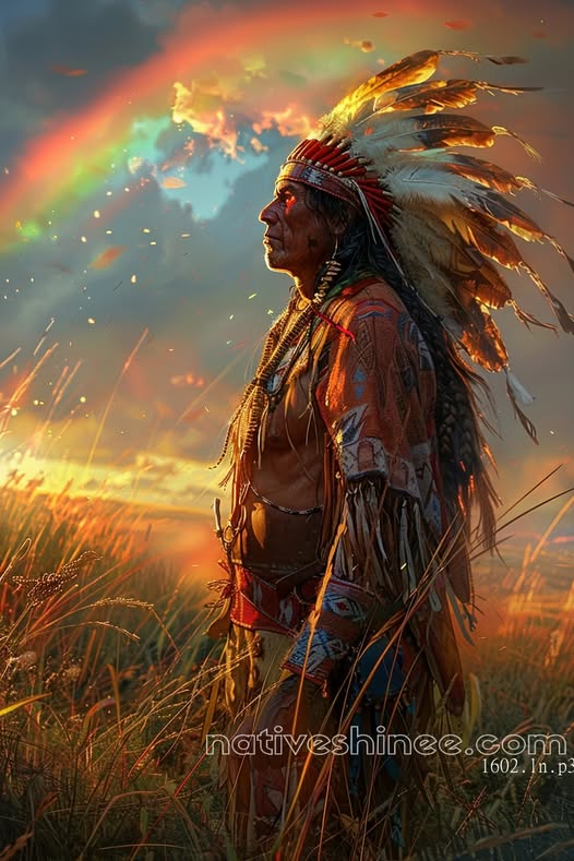 Experience the beauty and spiritual essence of Native culture with Rainbow Warrior Native American Canvas. This breathtaking artwork depicts a proud Native American elder standing beneath a radiant sunset, with a vivid rainbow arching across the sky—a powerful symbol of hope, unity, and ancestral blessings. His intricate headdress and traditional attire reflect wisdom, honor, and deep connection to the land. Printed on high quality durable canvas, this masterpiece brings warmth and meaning to any space, making it a perfect gift or home décor piece. Embrace the spirit of the Rainbow Warrior and own a timeless piece of Native heritage – order now.