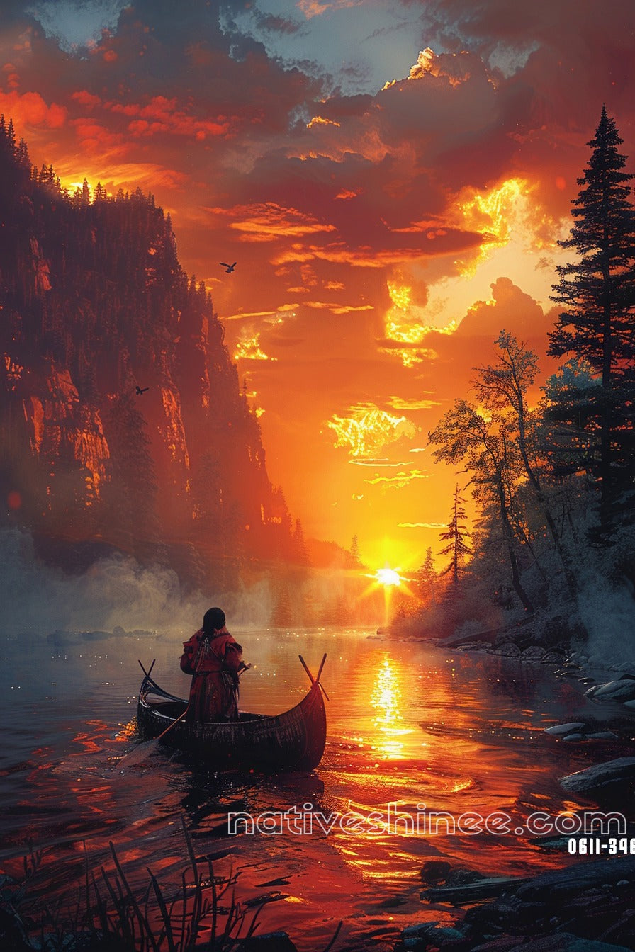 In Native American culture, rivers are seen as sacred lifeblood of the land—carrying wisdom, sustaining life, and reflecting the balance between all living things. The River of Peace Native American Canvas invites you to find stillness in the flow of life, reminding you to look inward for clarity, just as the river mirrors the sky.