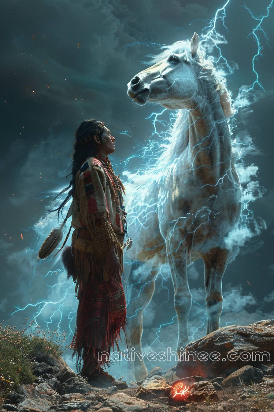 Sacred Connection with Lightning Horse Native American Horse Canvas