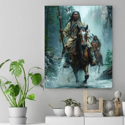 This stunning canvas artwork captures the timeless spirit and deep connection of Native American culture with the natural world. Featuring powerful imagery of Native figures, animals, and landscapes, each piece reflects the reverence for the land, its creatures, and the traditions passed down through generations. With intricate details and rich symbolism, this artwork honors the wisdom, strength, and harmony that are central to Native American beliefs. A beautiful and respectful tribute to the enduring legacy of Indigenous peoples, perfect for adding a soulful touch to any space.