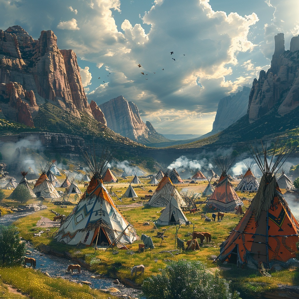Embrace the peaceful spirit of tradition with the Sanctuary in the Valley Native American Canvas. This stunning artwork captures a tranquil valley scene, where Native American culture harmonizes with the serene beauty of untouched nature. Lush landscapes and symbolic details evoke a sense of protection, connection, and reverence for the land. Crafted with premium-quality materials, this canvas brings warmth and cultural depth to your space. Perfect for those who treasure the timeless bond between heritage and nature, this masterpiece is a tribute to harmony, resilience, and the sanctuary of the earth.