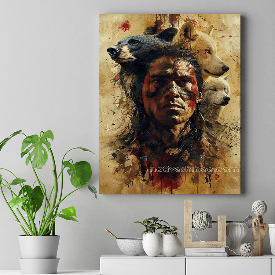 Spirit Animals of the Brave Warrior Native American Wolf Bear Canvas