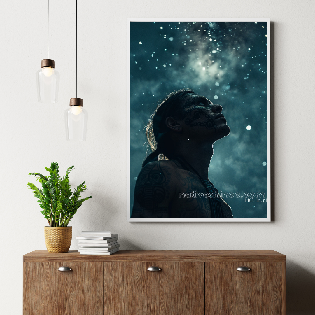 Immerse yourself in the mystical beauty of Native culture with Starry Spirit Native American Canvas. This captivating artwork portrays a Native American individual beneath a breathtaking star-filled sky, their painted face and intense gaze reflecting a deep connection to the universe. Surrounded by an ethereal light, this piece symbolizes strength, wisdom, and spiritual alignment. Printed on high-quality, durable canvas, it adds a powerful touch to any room, making it a perfect addition to your home décor or as a meaningful gift. Embrace the spirit of the Starry Spirit – order now.