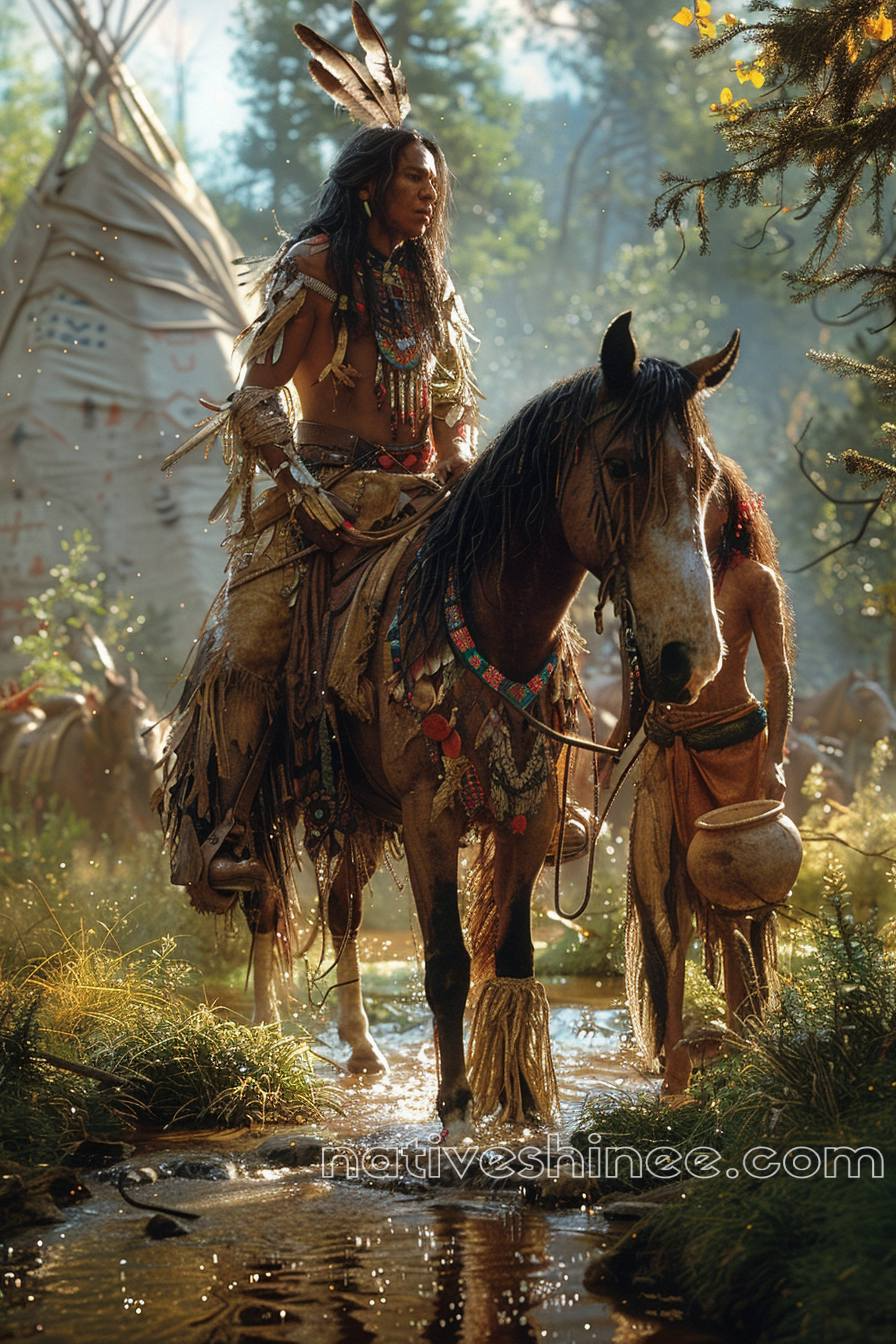 Sunlit Warriors: Embracing the Spirit of the Day Native American Horse Canvas