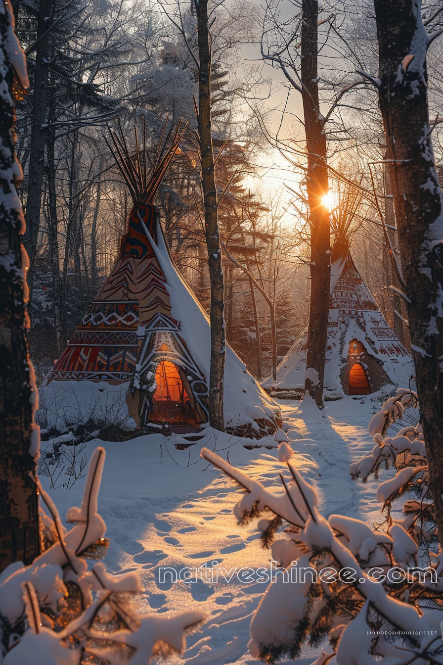 Sunrise Over Snow-Covered Teepees Native American Canvas