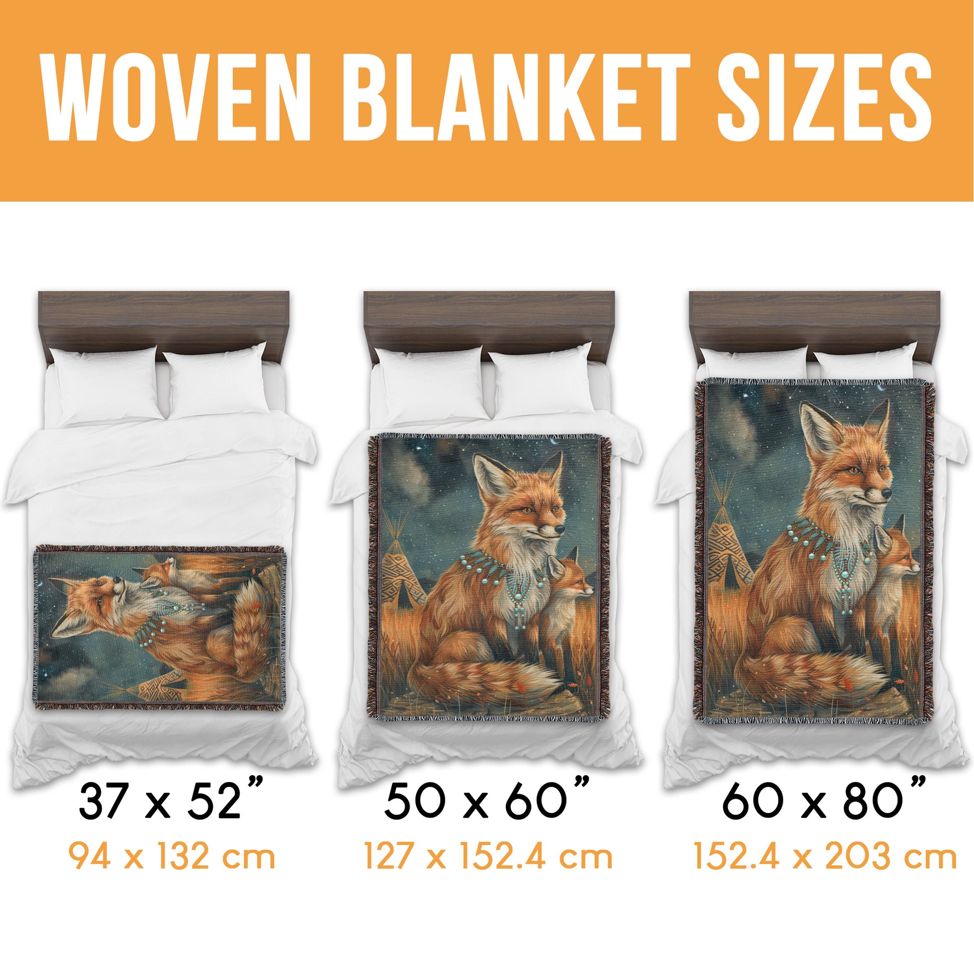 Bask in the glow of nature with our Sunset Fox Lake Woven Blanket! This stunning throw features a fox and her cub sitting by a serene lake at sunset, with a traditional teepee in the background, set against a vibrant sky and lush landscape. Perfect for those who cherish the harmony of wildlife and cultural heritage, this blanket adds a touch of serene beauty to any space. Crafted with a soft, woven texture and finished with fringed edges, it’s ideal for cozying up on chilly evenings, draping over your couch, or using as a striking wall tapestry. Wrap yourself in the peaceful imagery of this lakeside fox scene, and let its warm hues inspire your cozy moments.