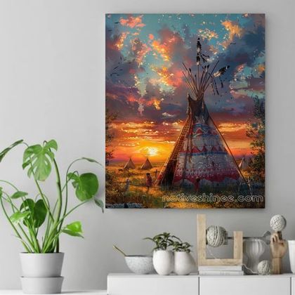Sunset Over the Teepee Village Native American Canvas VA