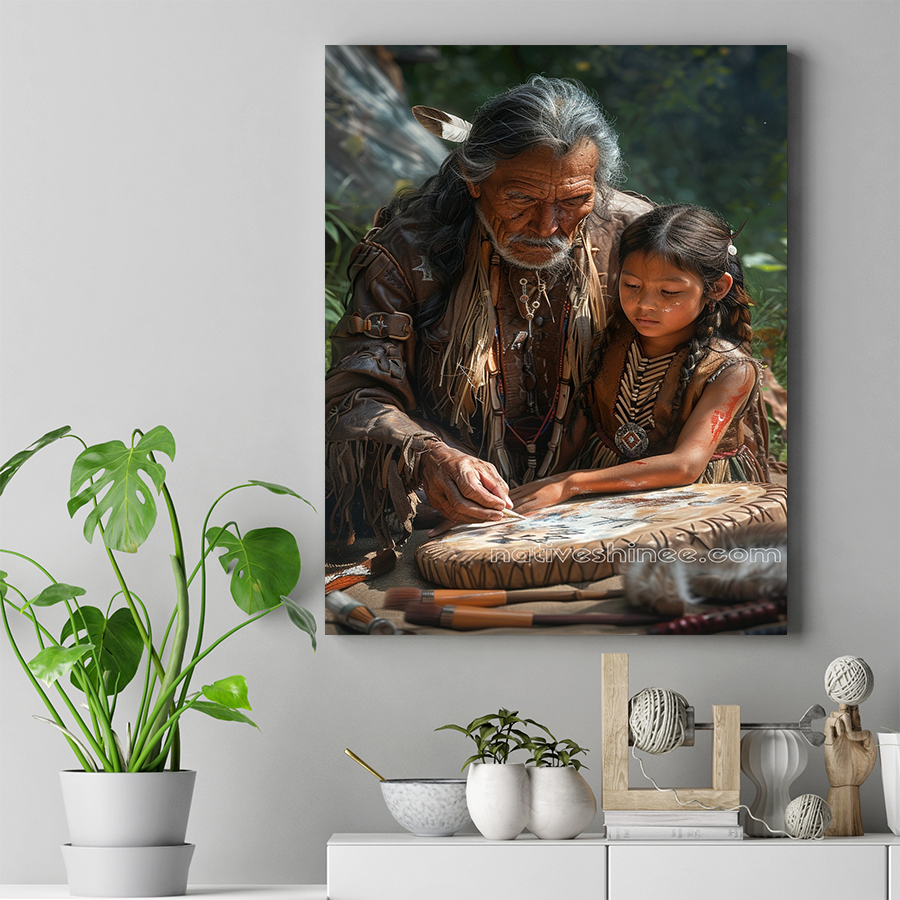Native Warrior's Call to the Majestic Eagle Native American Canvas