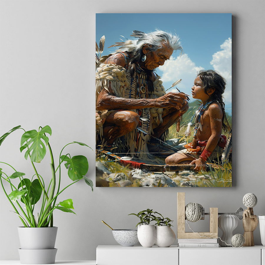Native Warrior's Call to the Majestic Eagle Native American Canvas