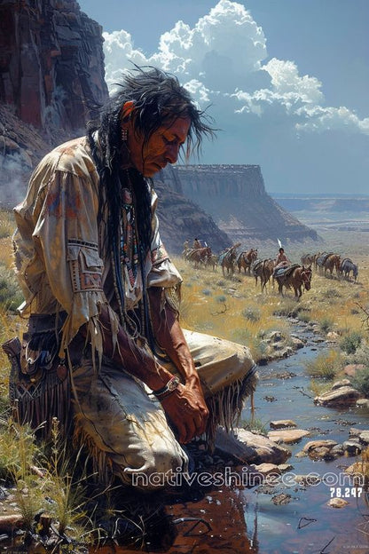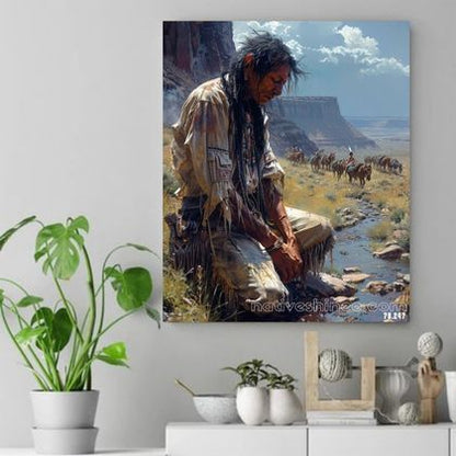 This stunning canvas artwork captures the timeless spirit and deep connection of Native American culture with the natural world. Featuring powerful imagery of Native figures, animals, and landscapes, each piece reflects the reverence for the land, its creatures, and the traditions passed down through generations. With intricate details and rich symbolism, this artwork honors the wisdom, strength, and harmony that are central to Native American beliefs. A beautiful and respectful tribute to the enduring legacy of Indigenous peoples, perfect for adding a soulful touch to any space.