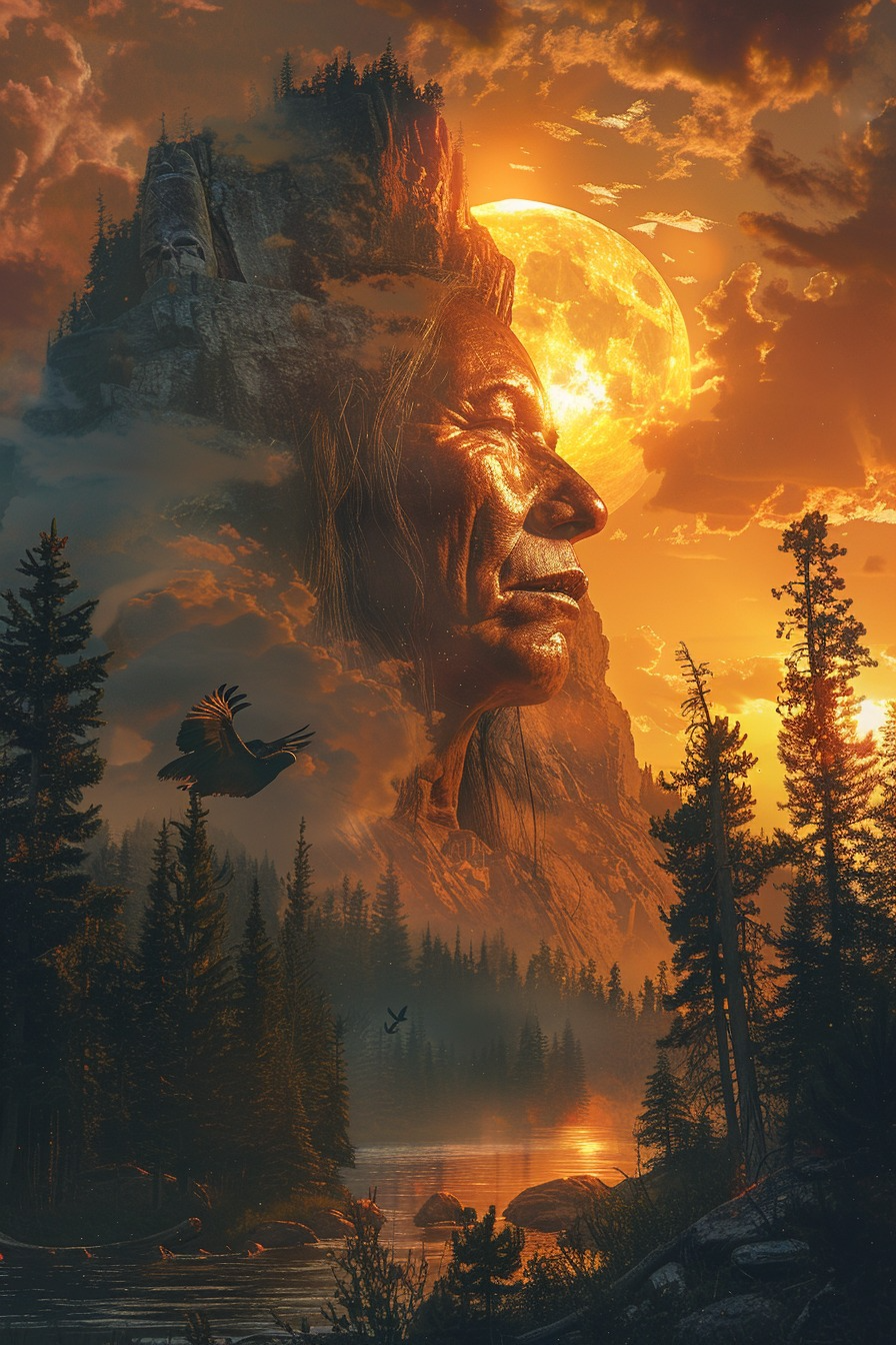 Native Warrior's Call to the Majestic Eagle Native American Canvas