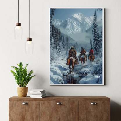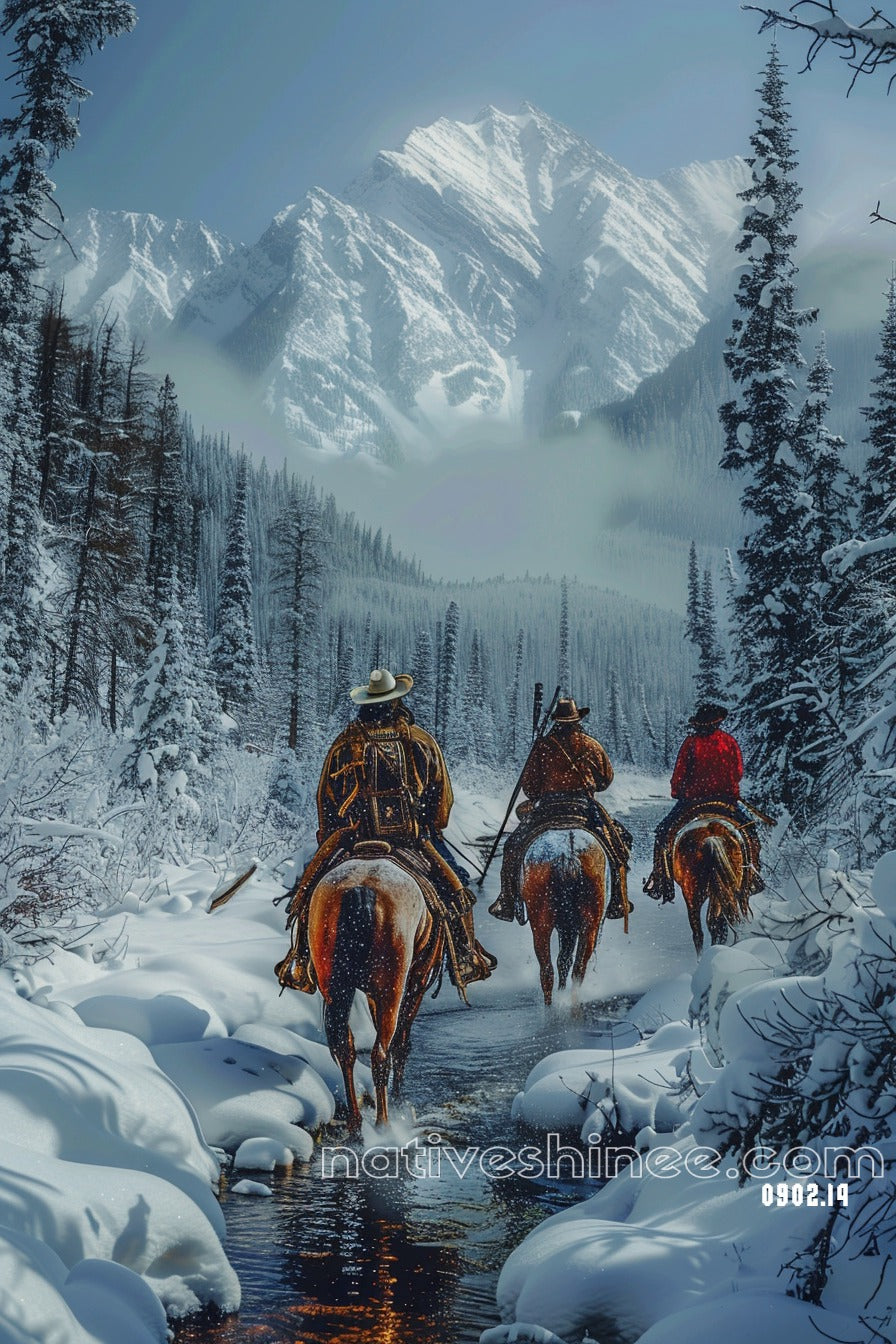 Immerse yourself in the powerful legacy of Native American history with Trail of the Ancestors Native American Canvas. This stunning artwork depicts a group of Native Americans riding through the snow-covered wilderness, making their way through a serene, snow-dusted landscape. Their journey is one of perseverance and strength, navigating through the rugged beauty of the mountains that stand as silent witnesses to their path. The artwork’s vivid depiction of the natural world, coupled with their traditional attire, evokes the deep connection these people had with the land. Printed on high-quality canvas, this piece brings a sense of history, power, and beauty into any home. Celebrate the resilience of Native peoples—order now.