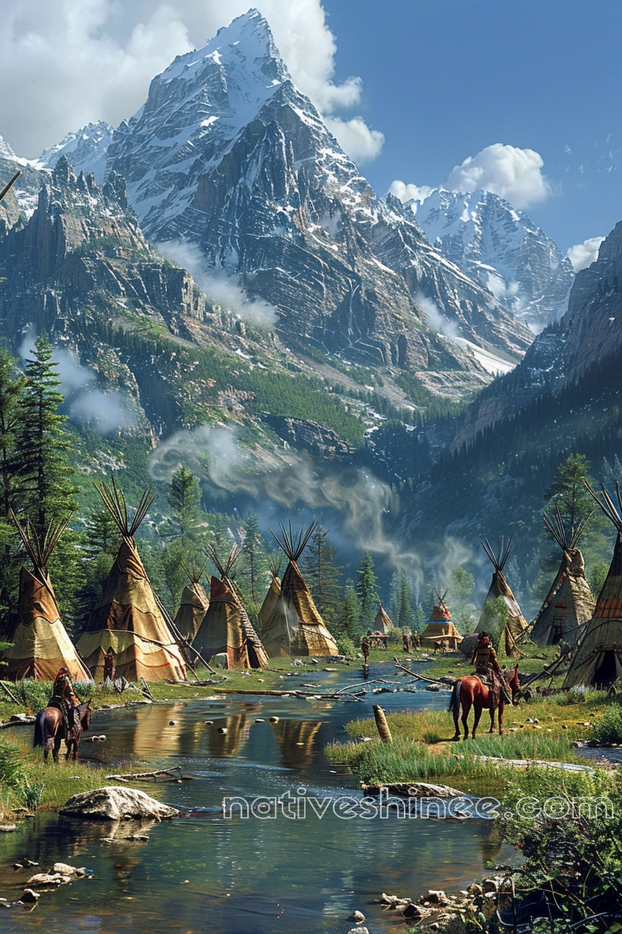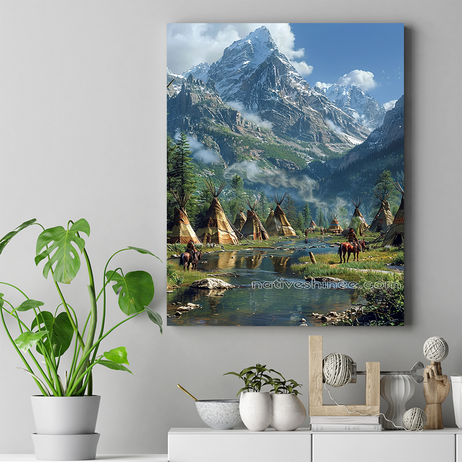 Tranquil Teepee Village in the Mountains Native American Canvas