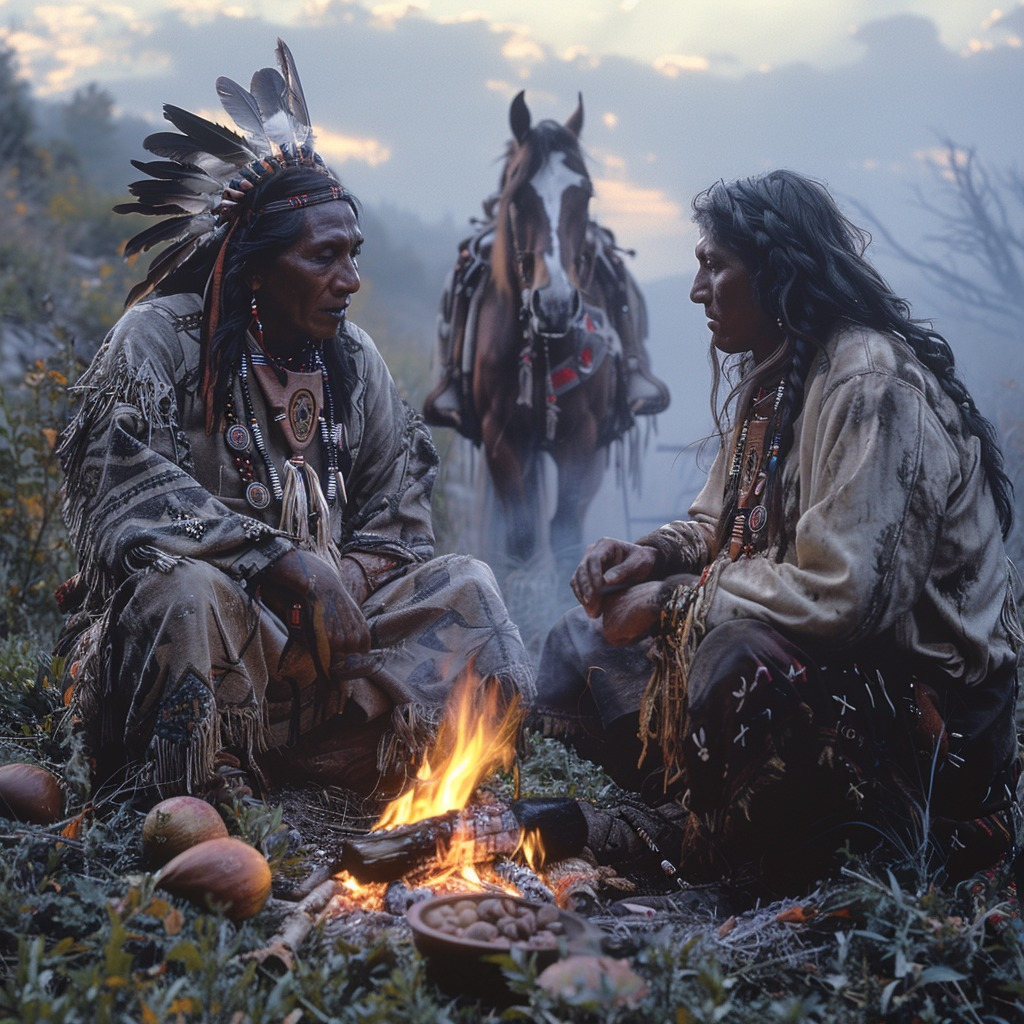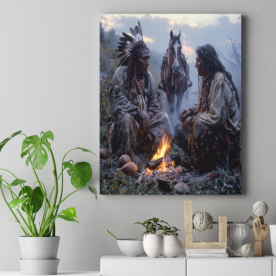Twilight Tales by the Campfire Native American Horse Canvas