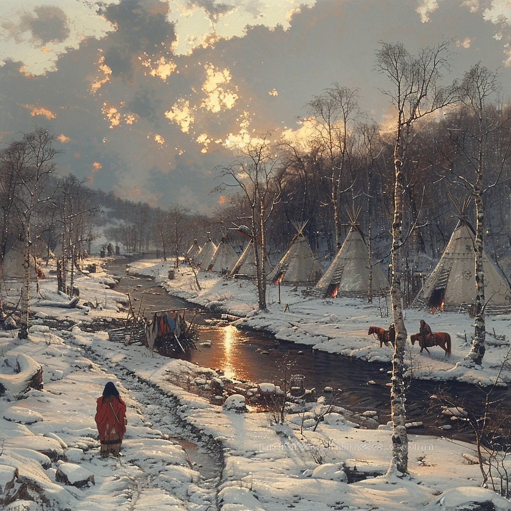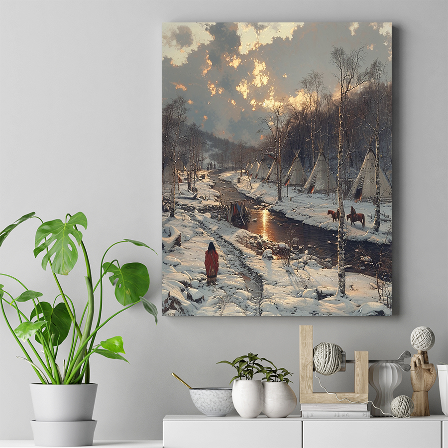 Twilight Whispers in the Winter Camp Native American Horse Canvas