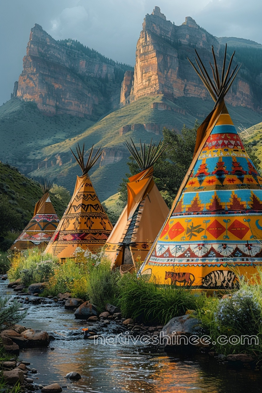 Vibrant Teepees in the Mountain Valley Native American Canvas