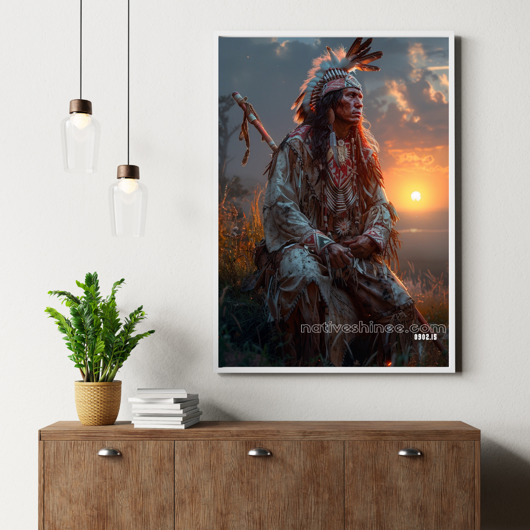 Embrace the strength and spirit of Native American heritage with Warrior of the Sunrise Native American Canvas. This stunning artwork portrays a proud warrior seated in quiet reflection, his eyes set against the rising sun. His intricate attire and ceremonial feathers symbolize the honor, wisdom, and deep connection to the Earth and the ancestors. The soft glow of the sunset enhances the spiritual aura of this powerful image, reflecting a moment of peace amidst the chaos of life. Printed on high-quality canvas, this piece brings the timeless beauty of Native culture into your home. A perfect addition to any space, it’s a tribute to the bravery and resilience of Native warriors. Own this extraordinary piece of Native history—order now.