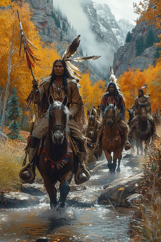 Warriors' Ride Through Autumn Valleys Native American Canvas