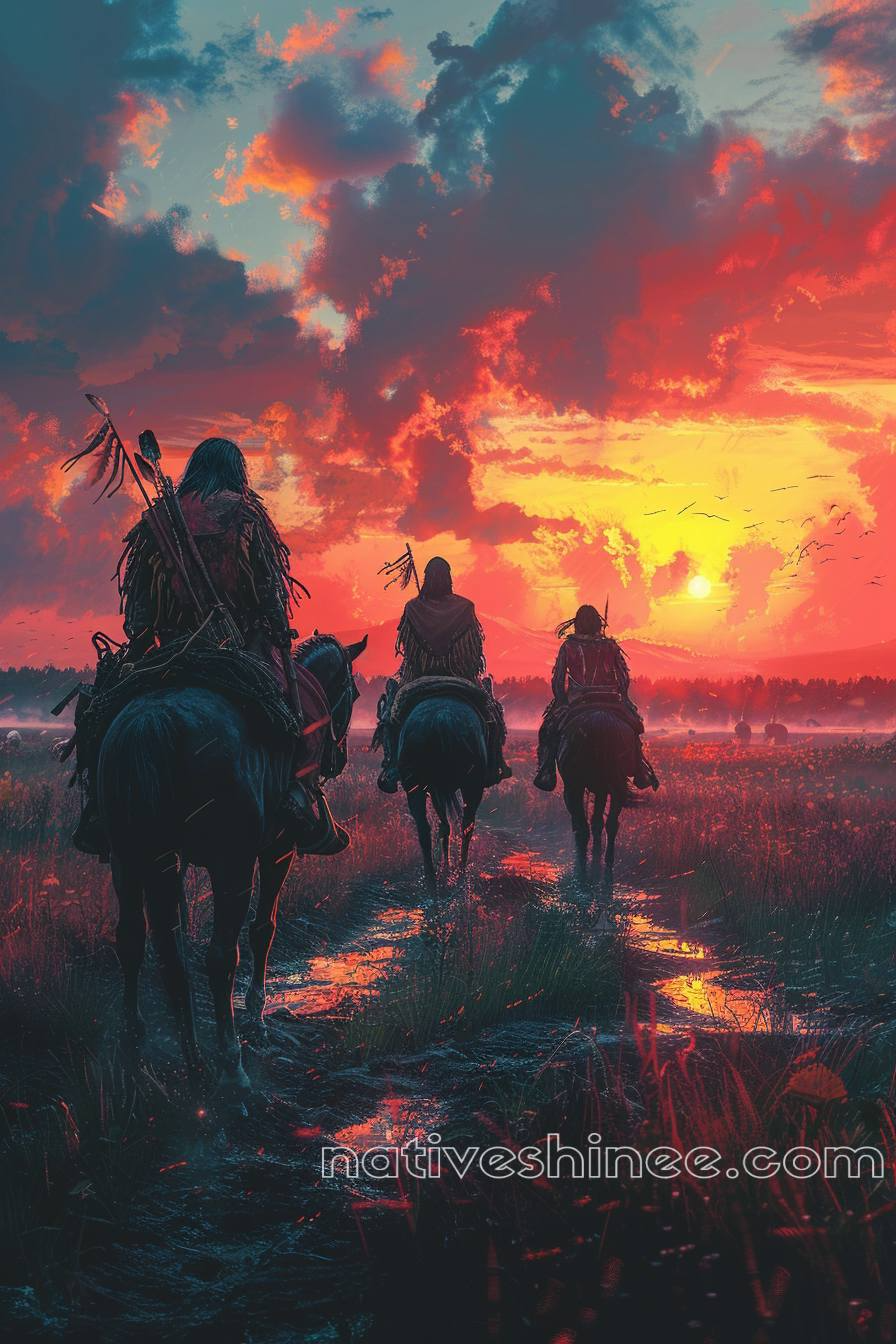 Warriors Riding Into the Sunset Native American Horse Canvas