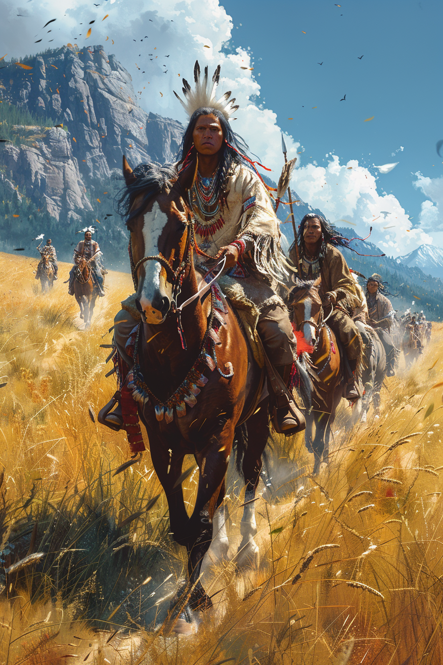 Warriors Riding Through Ancestral Lands Horse Native American Canvas