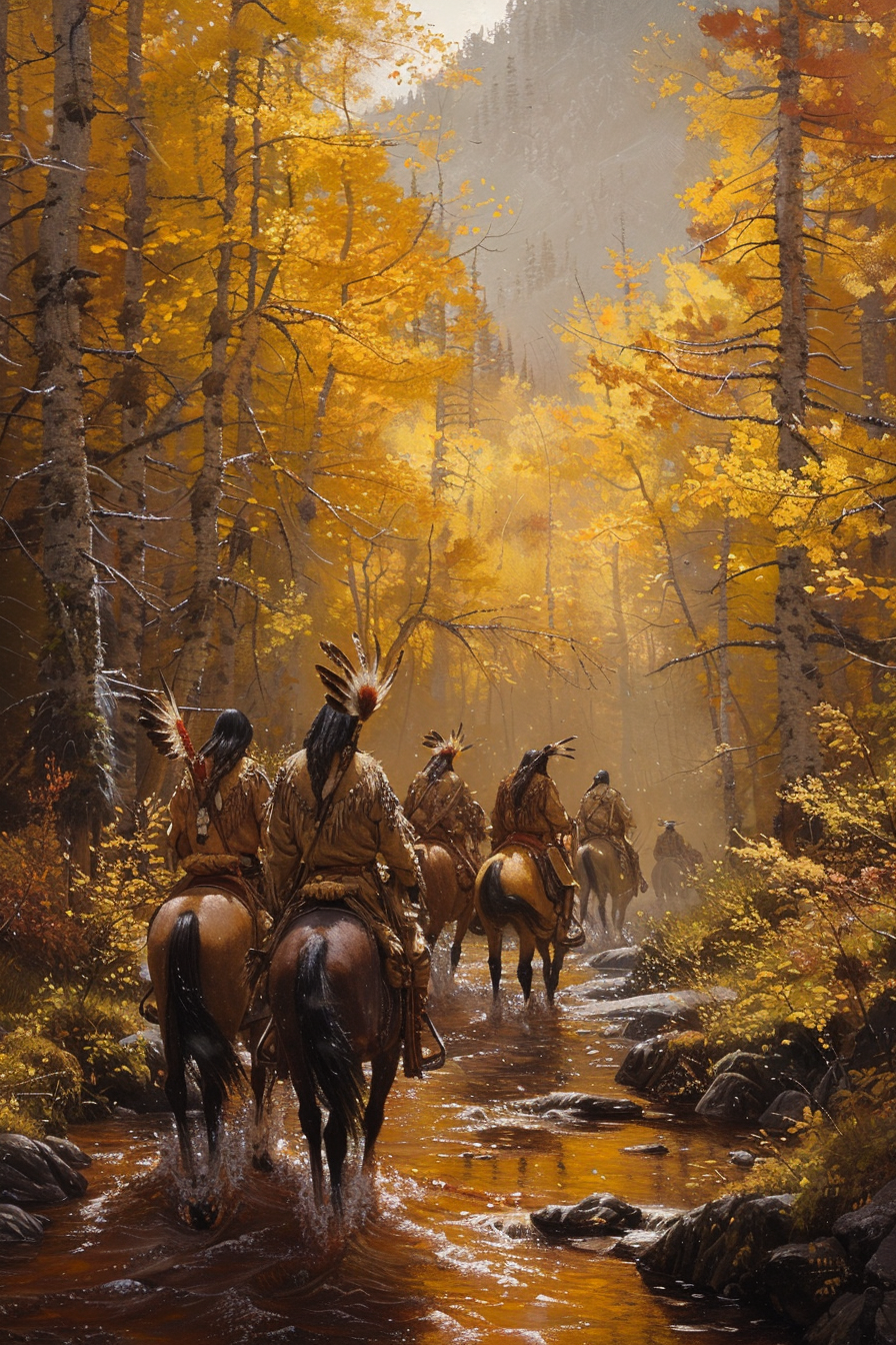 Warriors Traversing the Golden Path Native American Canvas