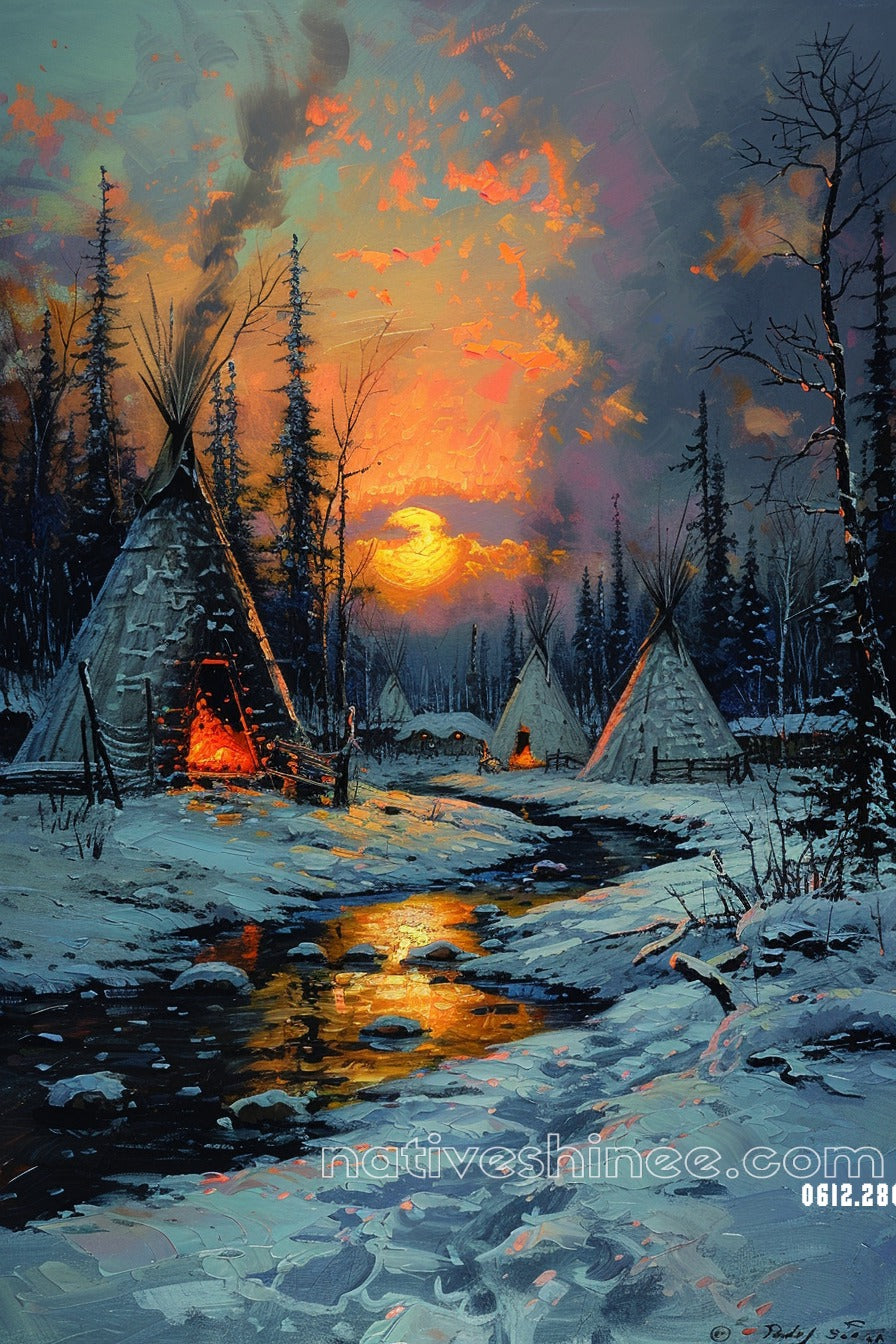 When The Sun Downs Native American Canvas