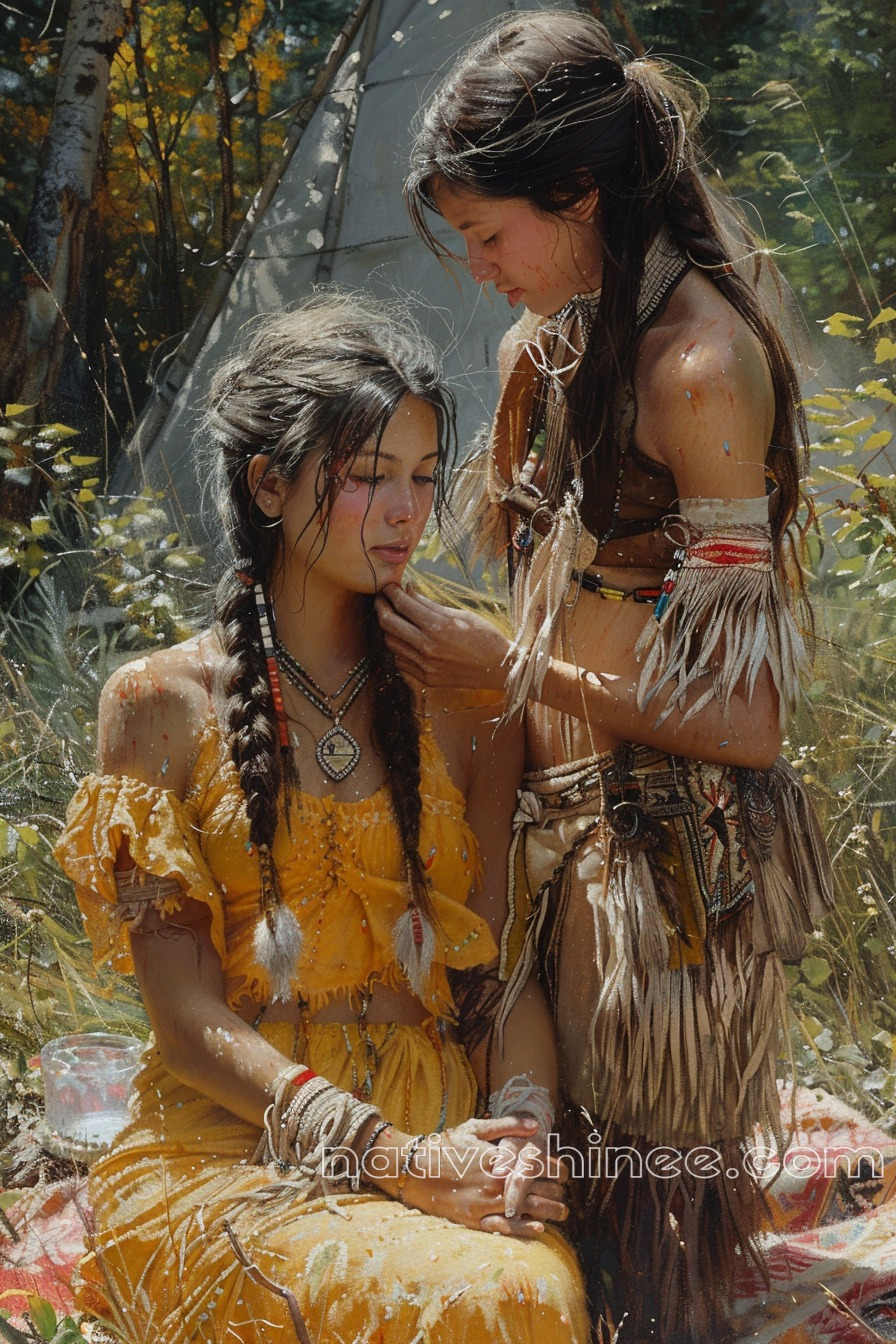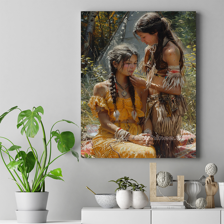 Whispers of the Earth: Sisters in Harmony Native American Canvas
