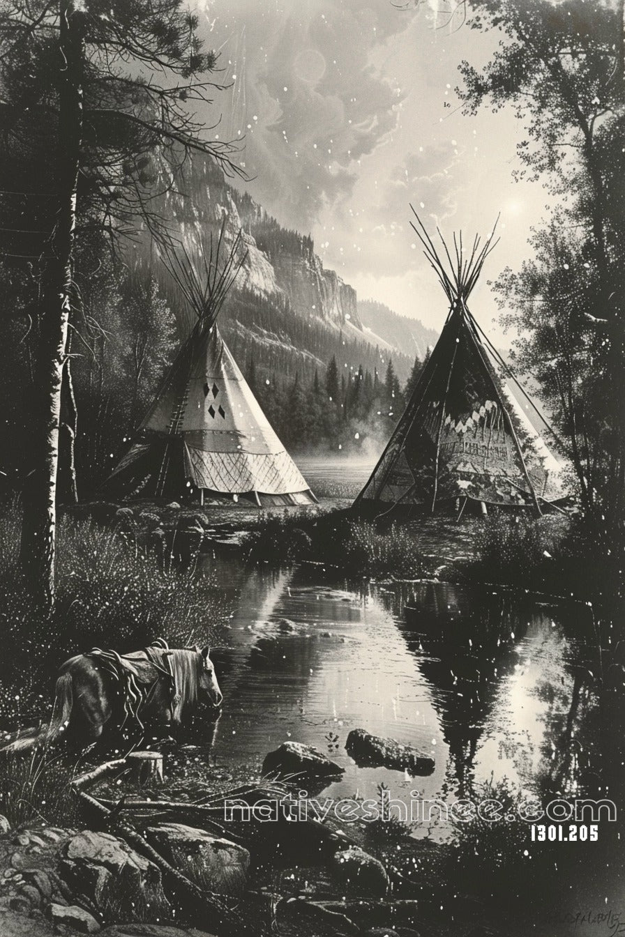 Whispers of the Wild: The Quiet Camp Native American Canvas