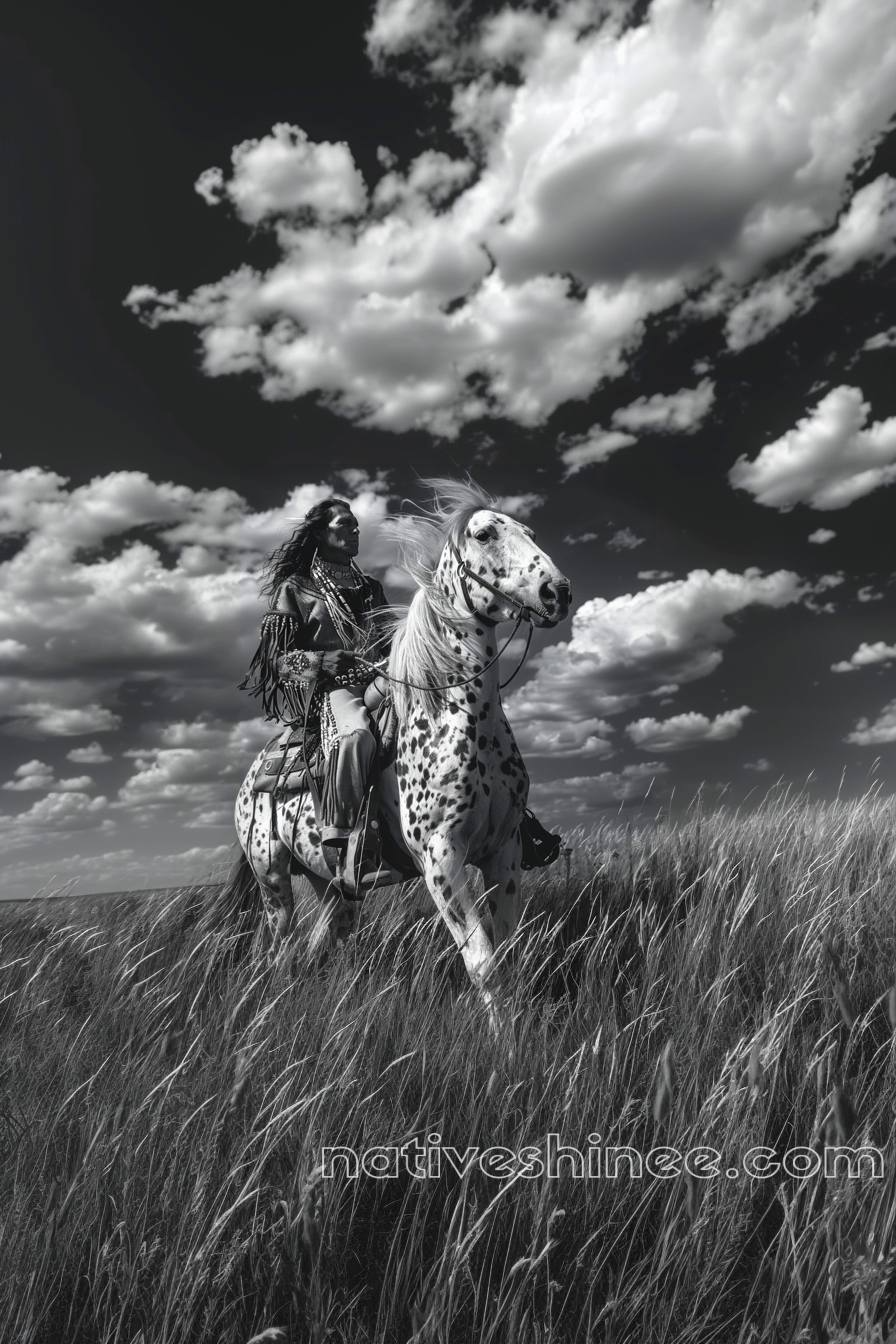 Windswept Journey: Native Warrior on Horseback Native American Horse Canvas