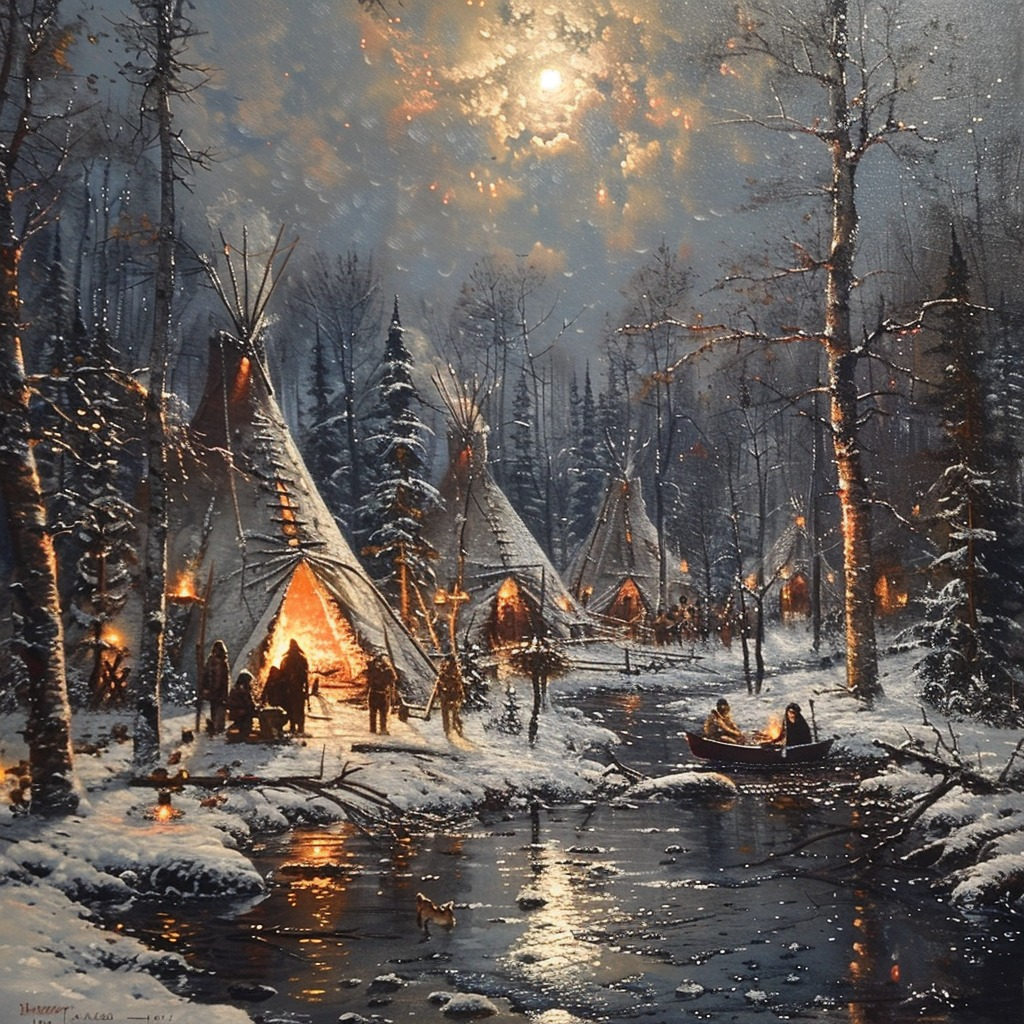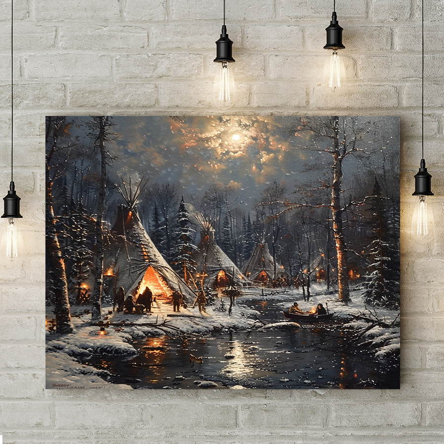Winter's Embrace in the Forest Native American Canvas