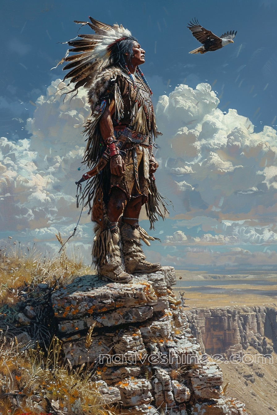 Native Warrior's Call to the Majestic Eagle Native American Canvas